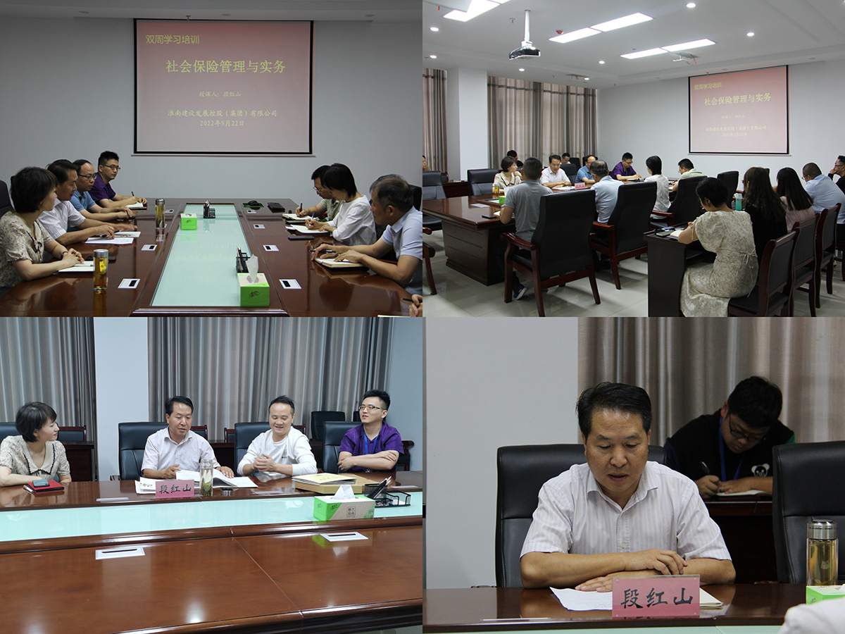 9月22日下午,集團公司開展2022年度第八次“雙周學習”,邀請市人社局養(yǎng)老科段紅山,開展社會保險管理與實務培訓。公司工會、組織人事部、各子公司主要負責人,以及人事相關(guān)人員參加。