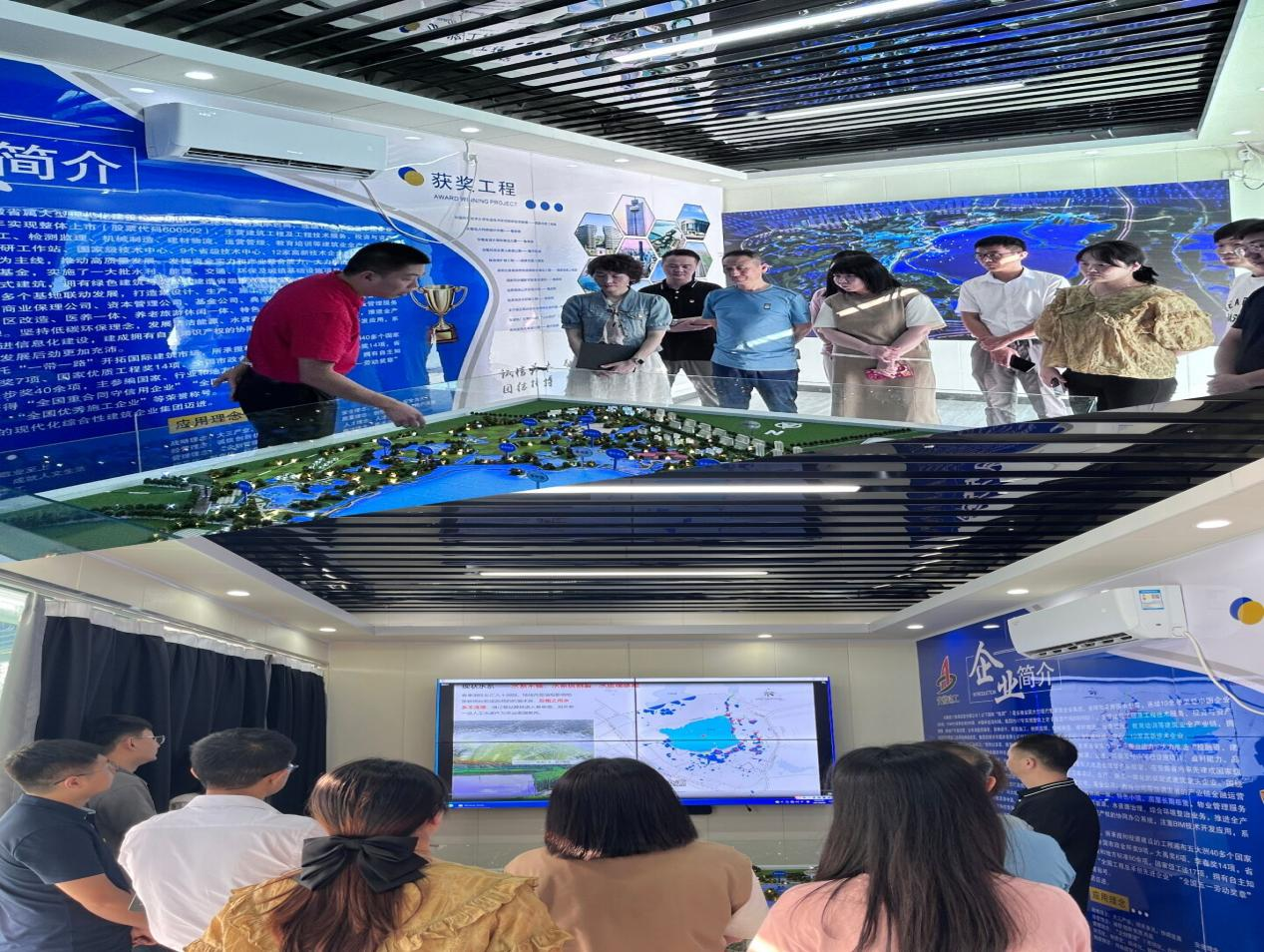 活動中,黨員們認真聽取了項目建設(shè)負責(zé)人關(guān)于項目規(guī)劃、建設(shè)成效、預(yù)期效果等方面介紹,參觀了智慧工地、沿湖廊橋、凈水階梯等建設(shè)情況,實地看變化、見發(fā)展,感受項目專班人員和施工人員爭分奪秒搶建設(shè)進度的緊張場面。活動最后,第一黨支部和項目建設(shè)單位安徽建工淮南分公司還在項目部開展了熱烈地交流座談。建設(shè)方項目經(jīng)理蔣歡和有關(guān)專項工作負責(zé)人向黨員們詳細介紹了自開工以來,全體參建人員“掛圖作戰(zhàn)、倒排工期”,黨員干部充分發(fā)揮先鋒模范帶頭作用,駐扎一線辦公作業(yè),及時協(xié)調(diào)解決拆遷、測繪、技術(shù)攻關(guān)等方面困難問題,加速工作推進的過程。通過現(xiàn)場參觀與深入交談,黨支部黨員們更加切身感受到項目建設(shè)的強度與難度,感受到參建者舍小家、顧大家的奉獻精神。